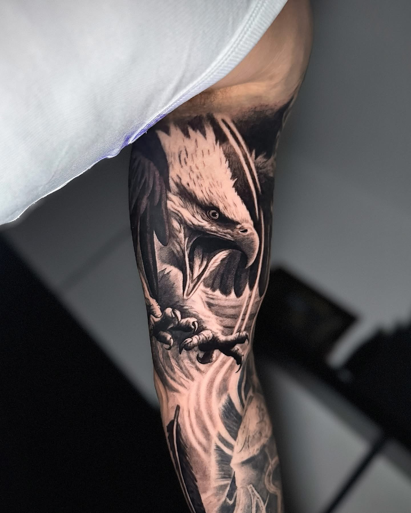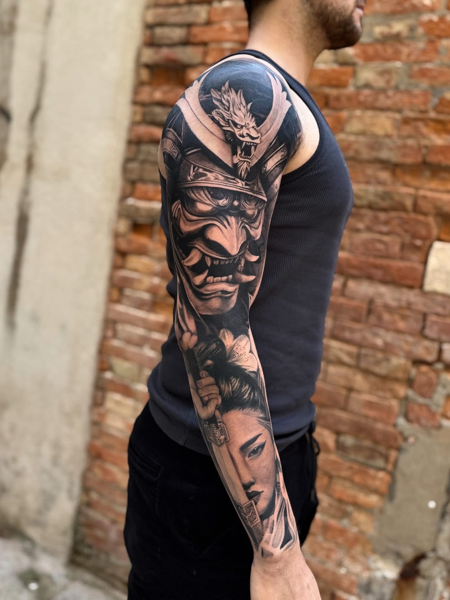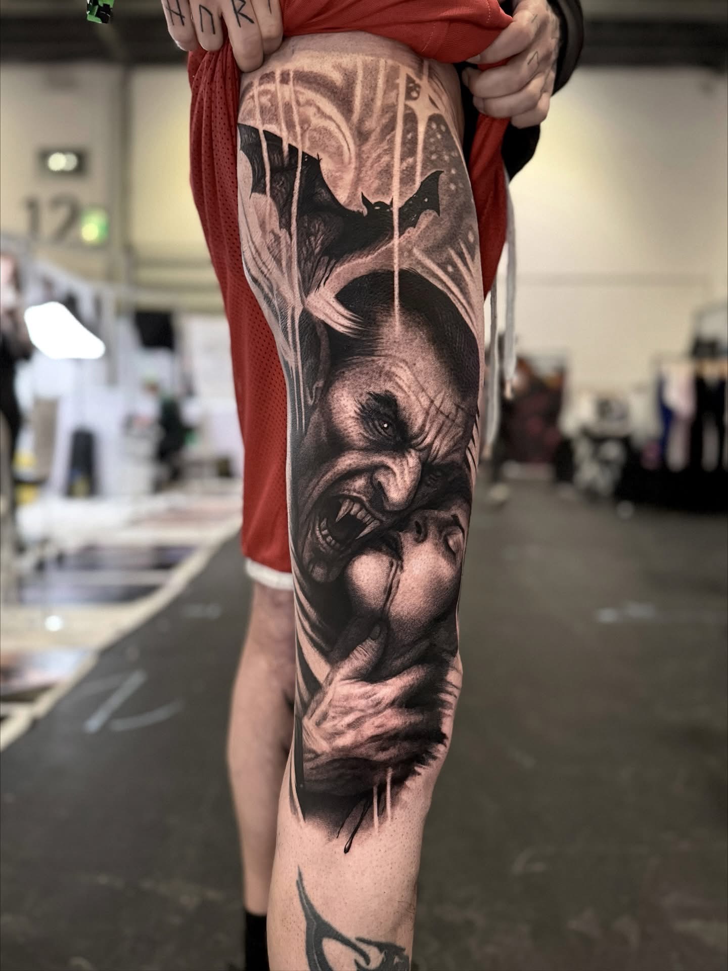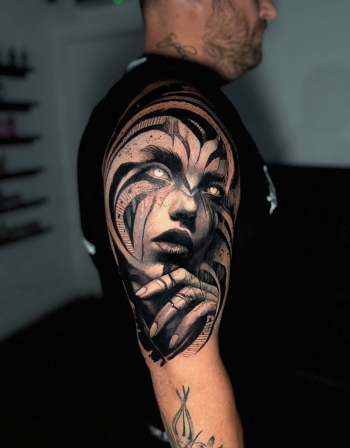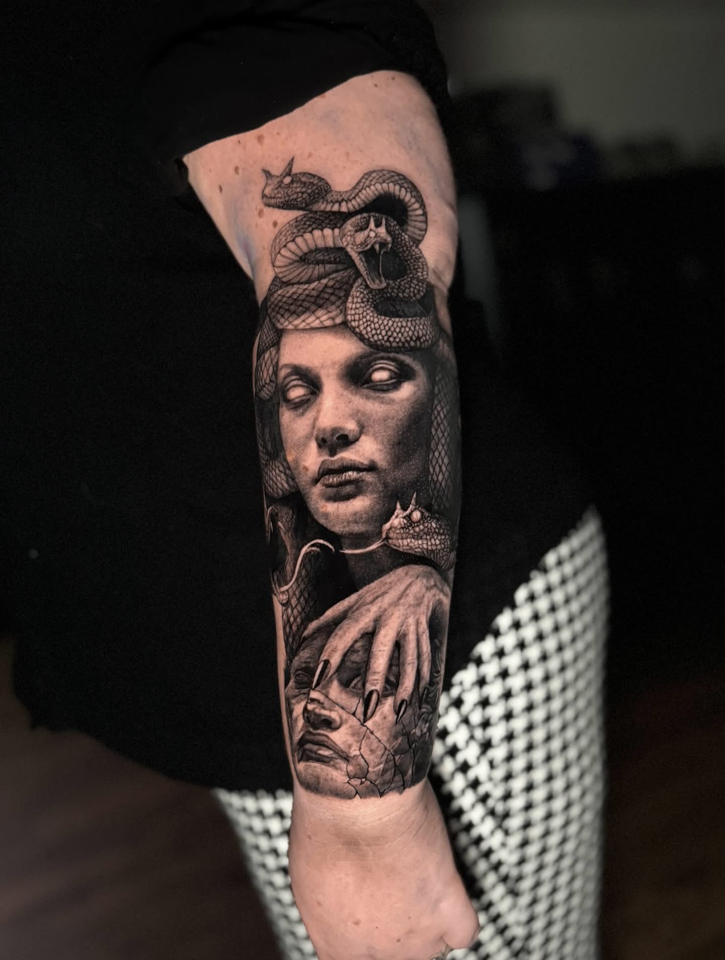 I am Giacomo, class 1999 - born and raised in the lagoon of Venice, Italy. I moved to London in 2019 in search of a bigger city and a dynamic environment that could spark my creativity. As far as I can remember, I’ve always been into the art world, especially drawing dark fantasy creatures and characters from magic cards, books and video games. This passion was first reflected in a small business I started in Italy for customising sneakers while also painting and doing artwork in my spare time. When in London, I first became a professional bartender, although never losing track of what my final goal was. I finally joined Ushuaia and started tattooing in 2022 and my favourite styles are B&G Surrealism and abstract blackwork. My hobbies are going to art galleries, whiskeys/craft beer bars but also watching animes and playing video games that help me find inspiration for my next creations. I am always looking forward to the next challenge and working on original proposals, so let's catch up at the studio!